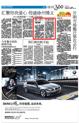 11月30日的《徐州日报》05版以《爱心围巾传递温暖》为题对我校机电学院爱心活动进行报道。