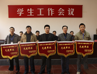 针对学生工作如何有效开展,市政学院党总支副书记杨世铎、装饰学院党总支副书记葛志亮、建工学院专职辅导员李锐分别结合暑期的新加坡考察学习谈了自己在学生工作中的心得体会与看法。 我校在党校教室召开了学生工作会议 党委副书记吴光林发表讲话 2009-2010学年学生工作先进单位、先进个人受到表彰 学工处、团委全体教师及二级学院学生工作领导小组负责人、全体专职辅导员、团总支书记参加了会议。