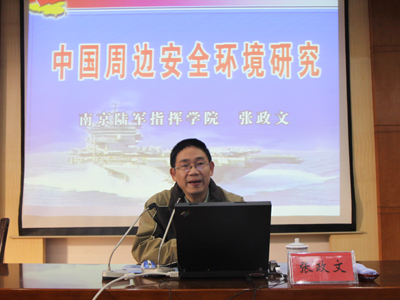 在两个多小时的报告会中,张政文教授以大量翔实的事例,从历史的角度、发展的角度、法理的角度,紧扣国际形势与我国周边安全环境,就国家关系、我国的军事外交政策,深入浅出、非常生动地分析了我国东海、南海、印度洋等政治和军事形势。张教授的报告使我们进一步了解了当前我国面临的周边环境和政治形势,清醒地看到我国国家安全形势具有多边性,解决这些问题具有复杂性和艰巨性,告诉我们在处理这些错综复杂问题时必须坚持“有理、有利、有节”的方针,关键是要瞄准我们既定的目标,坚持不懈地、认真地做好自己的事情,同时对面临的挑战也不能掉以轻心,要增强忧患意识和责任意识。