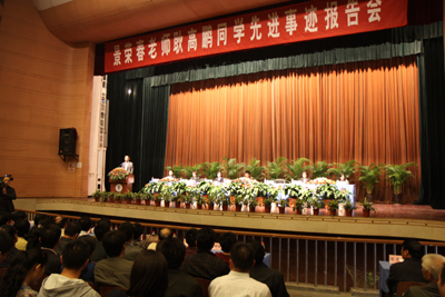 按照全省教育系统创先争优活动的整体安排,10月14日,景荣春老师、耿高鹏同学先进事迹报告会在中国矿业大学举行。我校党委副书记吴光林和八十名师生代表听取了景荣春老师、耿高鹏同学先进事迹。