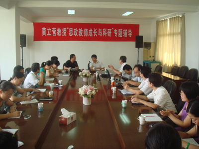 考察期间,黄立营教授针对当前高职院校思政教育教学面临的机遇和挑战结合思政教师成长发展作了“思政教师成长与科研”专题讲座。周军就我校毛泽东思想与中国特色社会主义理论课程专题教学特色、思想道德修养与法律基础案例教学情况作了详细介绍。双方还就相关问题进行了深入交流。