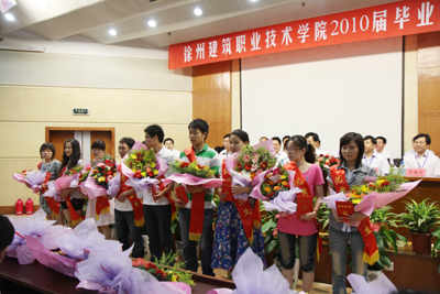 我校对陆广辉等138名优秀毕业生进行表彰,受表彰的同学依次上台领奖。