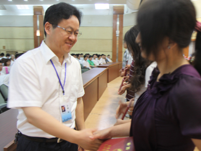 今年我校共有4651名毕业生,袁洪志向毕业生代表颁发了毕业证书并深情寄语毕业生:要牢记社会责任,成为对社会有用的人;要成为仰望天空、脚踏实地的人;要成为不忘母校,为校争光的人。