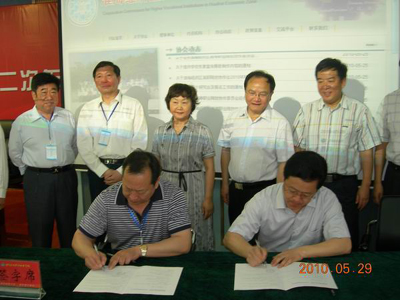 会上,王旭善书记主持了淮海经济区高职院校协作会专门网站开通仪式,韩小爱处长和马树超教授共同启动网站。我校与河南建筑职业技术院、日照职业技术学院与阜阳职业技术学院等十余家单位共同签订联合办学协议。在新成立的五个研究会上,我校被推选为党建与管理研究会会长单位。