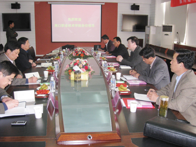 王旭善书记首先代表学校党政热烈欢迎任书记一行,并向客人简要介绍了学校基本情况。之后,客人观看了学校党建专题片,听取了组织部长徐勇就学校党建基本情况和党建考核情况的介绍,宣传部长方桐清就党委中心组学习情况和党员领导干部理论学习情况的介绍,工会主席孙世奎就教代会等民主管理情况的介绍,吴光林副书记就辅导员队伍建设和管理、学生思想政治教育和党风廉政建设情况的介绍,同时双方还就共同感兴趣的高职教育、学校管理等其他方面的问题进行了广泛深入的交流。