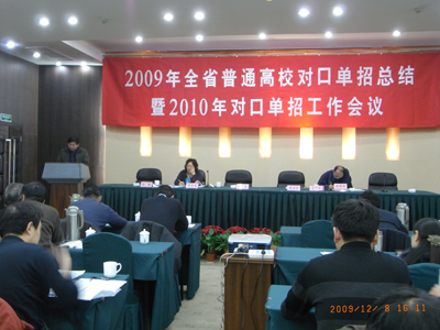 128,由江苏省教育考试院组织的全省普通高校对口单招总结暨2010年对口单招工作会议在南京召开。会议由考试院高招处徐德明主持,省教育厅职教处刘克勇处长、考试院霍宝柱副院长作了重要讲话,包括我校在内的3所高校的分管领导分别作了交流发言。各市招办分管领导及各专业联考委负责人、联考办主任等参加了会议。