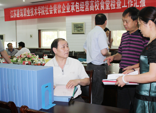 6月20日上午,江苏省教育厅社会餐饮企业承包经营高校食堂检查组一行5人莅临我校检查指导学生食堂工作,南京工业职业技术学副院长陈桂林担任组长。我校副院长任留钦代表学校致欢迎词并简要介绍我校办学基本情况,后勤集团总支书记汪玉静作学生食堂监管及运营情况工作汇报。
