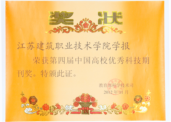 此次评比采取学术质量和编辑出版质量综合评比。经专家评审,我校主办的《江苏建筑职业技术学院学报》因学术质量和编辑出版质量突出,在全国高职高专学报中唯一一个被评为中国高校优秀科技期刊。(学报编辑部 梁赛平)