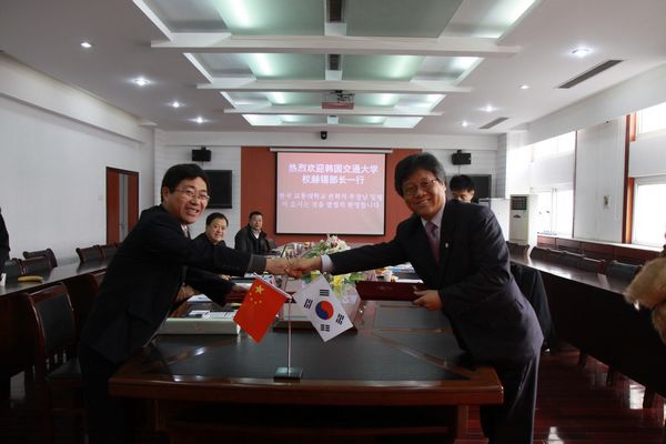 1月10日,韩国交通大学国际交流部权赫锡部长一行来访我校,吴光林院长、沈士德副院长先后接待了来访客人。