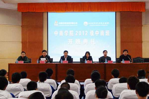 近日,江苏建筑职业技术学院中南学院2012级中南班开班仪式在学校学术报告厅举行。学校副院长沈士德,中南集团人力资源总监陈鸿雁,中南集团人力资源部经理袁庆丰和学校相关职能部门、相关学院负责人及2012级中南班全体同学参加了开班仪式。