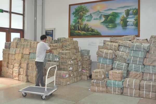 书库空间窄狭封闭,空气不流通,同志们发扬不怕脏不怕累的精神,个个干劲十足,人人挥汗如雨、汗流浃背,传书、分类、打包、搬运,秩序井然,劳动的场面热火朝天。在参加劳动的同志们中,有很多女同志,尽管有的身体不好,但仍然坚持在劳动第一线。