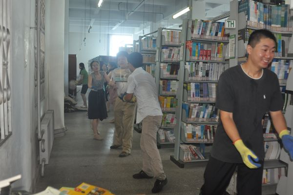 为确保新图书馆前期各项准备工作的顺利完成,暑假期间,图书馆全体人员冒着连续的高温,克服困难,抓住假期不影响教学服务的间隙时机,完成了原来已下架的5万册图书分类整理和打包搬迁的准备工作。