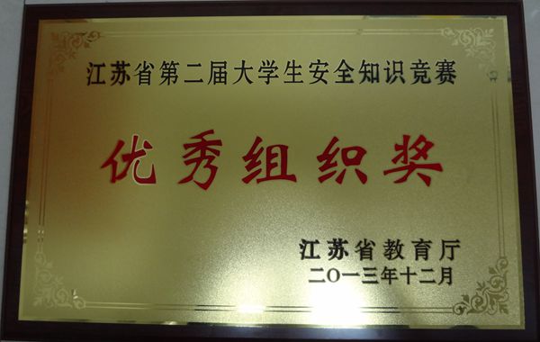 近日,从省教育厅传来喜讯,我校荣获江苏省第二届大学生安全知识竞赛优秀组织奖。今年9月至12月,省教育厅在全省高校举办了大学生安全知识学习和竞赛活动,为进一步加强大学生安全教育,普及安全知识,同时也为了提高大学生安全防范意识和自护自救能力,我校积极组织2013级学生参加活动。活动期间专门邀请有关专家举行安全和法制教育知识讲座,保卫处、学工处和各二级学院还结合实际开展了大学生喜闻乐见的系列安全和法制教育活动,取得了良好的成效。
