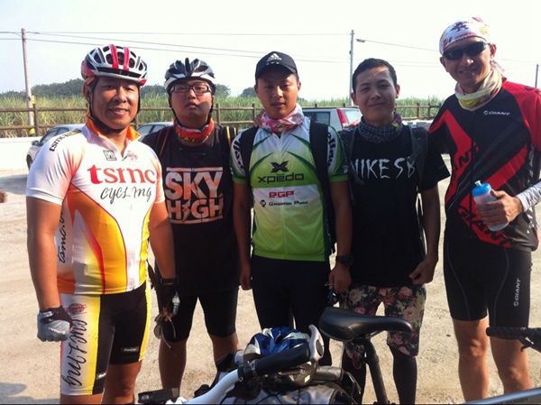 建管12-3施亦磊(左二),建工12-11徐磊(左三))参加台北国际马拉松赛