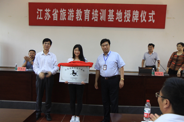 6月19日,“江苏省旅游培训基地”授牌仪式在我校党校教室隆重举行。我校孙进院长、徐州市旅游局雒永信局长共同为我校江苏省旅游培训基地揭牌,经管学院院长巩海霞代表我校接受“江苏省旅游培训基地”匾牌。徐州市旅游局副调研员栗冠彬、徐州市旅游局人事教育处处长丁成斌、我校副院长沈士德出席授牌仪式,经管学院商贸旅游系全体教师及在校学生代表共计80余人参加授牌仪式。