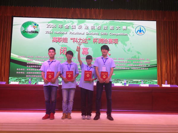 近日,全国职业院校技能大赛高职组“科力达”杯测绘竞赛在河南开封圆满结束,来自全国29个省市自治区、直辖市52所高职院校的52支代表队参加了比赛。我校建筑工程技术学院林乐胜、高学芹老师指导的测量12级学生许建全、陈一帆、朱雪松、祝宇在比赛中凭着娴熟技能、过硬心理素质、顽强拼搏精神,经过激烈角逐,荣获数字化测图赛项一等奖、二等水准测量赛项二等奖。林乐胜、高学芹老师荣获优秀指导教师奖。 (建工学院 王国安)