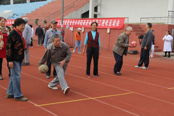 此次趣味运动会共设置持球竞走、排式保龄、盲人击鼓、定点投球、足球射门、飞镖比赛、手杖推球七个项目。趣味运动会的开展,为老同志们提供了一次锻炼、交流的好机会,增进彼此之间的情感,增强了融入集体的意识,丰富了离退休后的生活。(离退办 韩鹤进)
