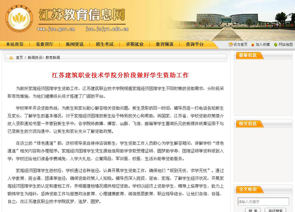 为做好家庭经济困难学生资助工作,江苏建筑职业技术学院根据家庭经济困难学生不同时期的资助需求,分阶段采取有效措施,为他们健康成长成才搭建了广阔的平台。