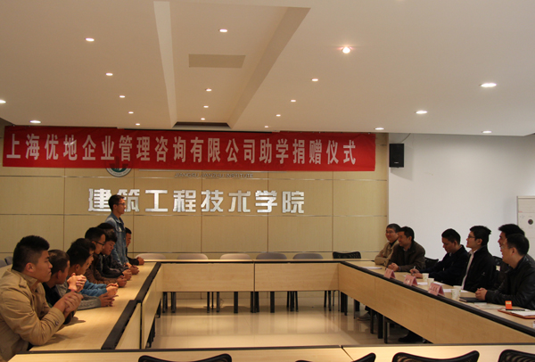 11月9日,上海优地企业管理咨询有限公司助学捐赠仪式在建工学院会议室举行,公司副总林忠汉、建工学院党政领导和受资助的9名学生参加了捐赠仪式。