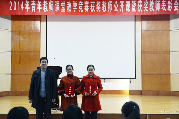11月18日,我校在学术报告厅举行2014年青年教师课堂教学竞赛获奖教师公开课暨获奖教师表彰会,副院长任留钦教授出席颁奖仪式并为获奖教师颁奖。