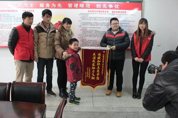 在校外,志愿者们走上街头进行公共自行车擦洗,走进子房街道津陇社区开展街道清扫等活动,为创建文明城市、建设美丽徐州做出积极的贡献。校内,志愿者们举行标签倡议、争当校园环保卫士等活动。系列活动中的重头活动——“志愿者交流展示会”,更是充分显示了我校大学生志愿者的风采。会上,云龙区子房街道津陇社区的工作人员为我校的大学生志愿者们送来了“传授知识点亮梦想,关注成长助力飞翔”的锦旗和感谢信,简短热情的话语是对我校志愿者工作最好的肯定。(团委 陈昕)