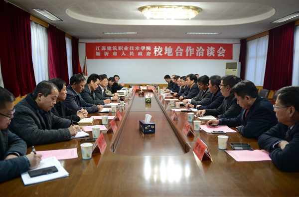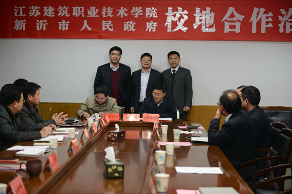 孙进院长在签约之前也发表了热情洋溢的讲话。孙院长在简要介绍了学校的发展历史、发展成就和人才技术优势后说,今后,学校将充分发挥人才培养优势,定向为新沂市培养、输送高素质技术技能人才;根据新沂市人才培养规划,为新沂市机关、学校、企业培训管理人员、技术技能人员和精英骨干。依托校内相关专业和研究平台,围绕新沂市相关产业,重点在建筑产业、节能减排、新型城镇化建设、新农村建设、农产品品牌开发、文化旅游产业、区域规划等领域为新沂市提供智力支持和人才保障。积极鼓励在校专家到新沂市创新创业,鼓励在校专家与新沂市相关企业开展技术合作,并积极申报江苏省和徐州市人才工程项目。根据新沂市“一山一湖一古镇”文化旅游资源文化资源禀赋特点,委派相关专家为新沂市策划、包装、推介文化旅游开发项目,开发推介特色旅游纪念品。支持新沂市打造“中国花厅文化城”综合文化旅游项目,组织相关专家到新沂市开展考察、采风、文艺创作和专家论坛活动。鼓励毕业生到新沂市就业、创业,利用校内网络资源,积极宣传新沂市,为新沂市加强与外地园区、品牌企业交流合作提供平台。优先为新沂市的科研机构和企事业单位开放现有的科技平台,积极提供相关科技信息等,协助新沂市建成一批企业工程技术研究中心。积极组织相关专家学者对新沂市经济社会发展、改革创新、新型城镇化建设等重大问题设立相关研究课题,为新沂市经济社会发展决策提供咨询,切实为新沂市经济社会发展提供服务。