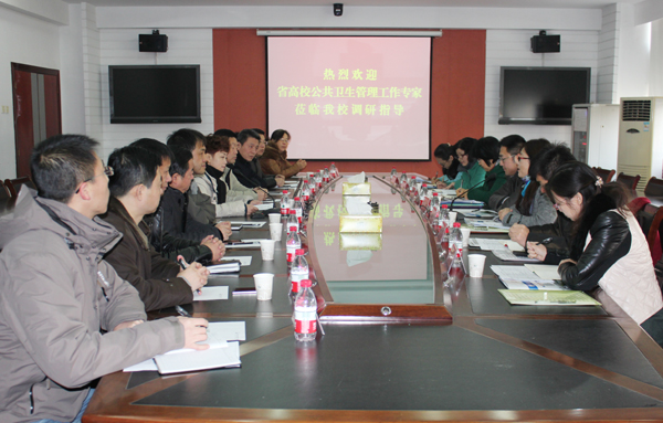 汇报会上,副院长梁惠代表学校致欢迎词,她在简要介绍学校基本情况后,从组织机构、基本条件、工作制度、健康教育、卫生防病、食品安全、公共场所卫生、信息发布等8个方面对我校近几年公共卫生管理工作进行了汇报。