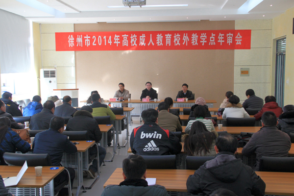 12月16日上午,徐州市2014年高校成人教育校外教学点年审会在我校建筑技术馆会议室隆重召开。市委教育工委副书记杜耀东到会作讲话,市教育局高教处处长姚新文主持会议并对全市2014年成人教育校外教学点检查及年审工作进行安排部署,我校副院长沈士德教授代表学校致辞。来自全市50余家成人教育教学点负责同志参加了会议。(继续教育学院 陈梦莹)