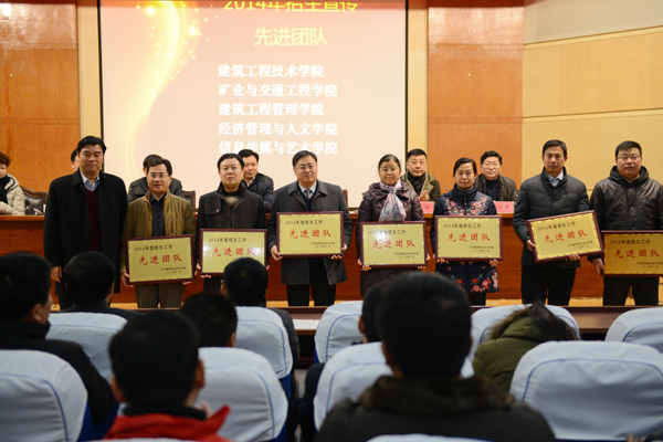 会议还对2014年度招生、就业工作先进集体,招生宣传先进团队,2014年度最佳就业专业,招生工作先进个人,就业工作先进个人、就业工作优秀教师,就业创业知识竞赛组织奖单位,招生宣传工作特别贡献奖等代表同志依次进行表彰。王国安、刘盛贤分别代表招生、就业工作先进集体和个人先后发言。(网宣)