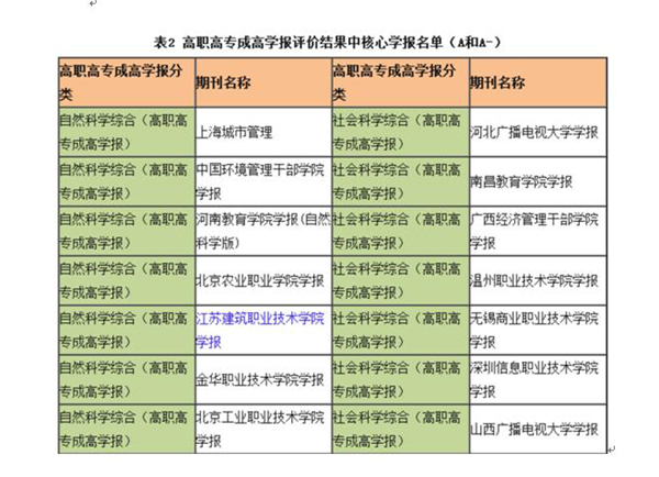 中国科学评价研究中心近日发布了第4版学术期刊的评价结果,我校学报入选高职高专“RCCSE中国核心学术期刊(A)”。