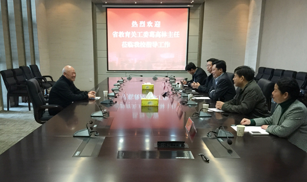 3月29日下午,省教育关工委葛高林主任莅临我校,考察指导学校关工委工作。校党委书记、关工委主任吴光林,党委副书记、关工委副主任张登宏,副院长、关工委副主任任留钦及相关职能部门负责人参加了汇报座谈。吴光林简要介绍了学校近年来的办学情况,近期主要工作。任留钦就学校关工委工作基本情况、存在的主要问题和基本思路、2015年关工委重点工作等进行了详细汇报。