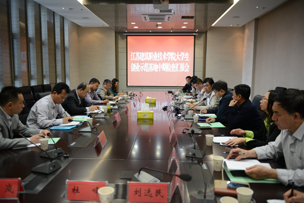 4月27日下午,由南京工业职业技术学院副院长霍雄飞任组长的江苏省第二批大学生创业示范基地中期建设情况检查组一行六人莅临我校检查指导工作。院长、党委副书记孙进教授,党委副书记、纪委书记张登宏教授以及宣传部、教务处、财务处、学工处、招就处、大学生素质教育中心、后勤服务中心及相关二级学院负责同志在图书馆会议室参加了汇报会。