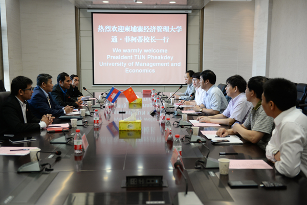 6月1日,柬埔寨经济管理大学通∙菲柯蒂校长一行5人访问我校。党委书记吴光林教授会见了来访客人,院长孙进教授、党委副书记张登宏教授代表学校接待了通∙菲柯蒂校长一行。
