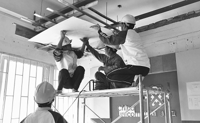 金螳螂家装e站订单班学生正在进行吊顶安装实训。(图片由江苏建筑职业技术学院提供)