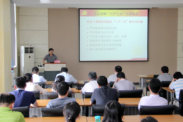 党课围绕为什么开展“三严三实”专题教育、怎么理解“三严三实”专题教育、“不严不实”相关表现、怎么开展“三严三实”专题教育等四方面展开。