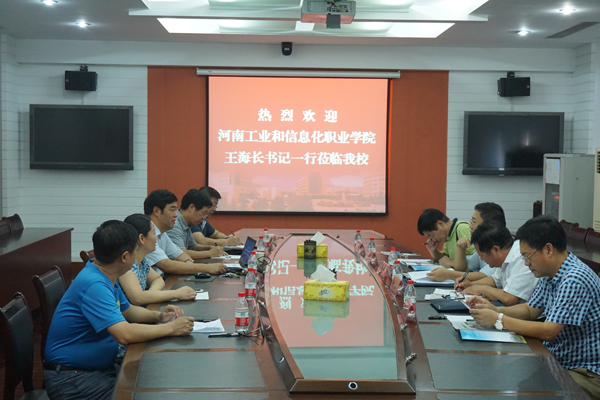 8月3日,河南工业和信息化职业学院党委书记王海长,副院长毋虎城,副院长席振修一行5人冒着酷暑来我校考察交流。院长、党委副书记孙进,副院长任留钦热情接待了来访客人。座谈会在第一实训楼视频会议室进行。