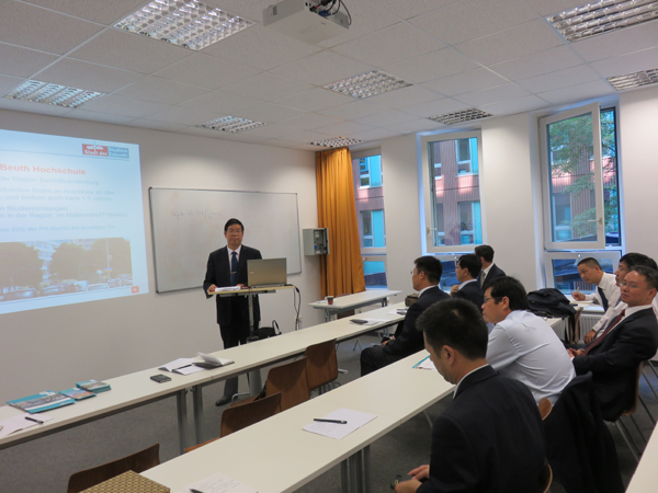 8月14日上午,访学团一行首先在柏林应用科技大学举行开班典礼,柏林应用科技大学豪夫阳教授致欢迎词并简要介绍学校情况,任留钦教授代表我校致谢并介绍学校基本情况,对全体团组成员提出了具体的学习培训要求。