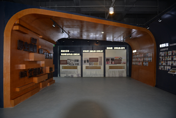 “科技•智慧城市馆”工程建设分成两个环节:方案设计、材料组织和审核由宣传部负责,组织施工由基建处负责。建设方案确定后,基建处积极组织施工图设计工作,多次邀请校内外专家会审图纸,提出修改意见,形成具有学校特色的施工图,并利用暑期组织施工,委托专业质资公司编制工程清单和监理。宣传部也利用暑期审核优化材料,与装饰施工并行进行。为做到精益求精、准确无误,在学校支持下,专门抽调校内精干力量进一步搜集、挖掘各种资料,对文化方案进行把关审定。科技处、高教所、学工处、教务处、团委、图书馆、离退办、财务处和有关二级学院给予了积极配合。