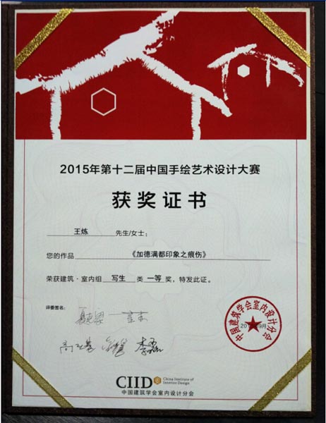 9月7日,2015年第十二届中国手绘艺术设计大赛评选结果揭幕,我校设计学院青年教师王炼的作品《加德满都印象之痕伤》喜获建筑·室内组一等奖,我校是唯一一所高职学院获奖。