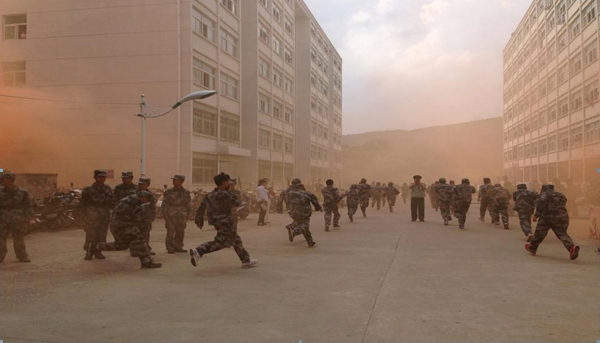 为增强学生安全意识,普及应对灾害防护知识,提高学生自救应急反应能力,在新生军训期间,我校在学生宿舍举行了2015级新生应急避险疏散演习系列活动。