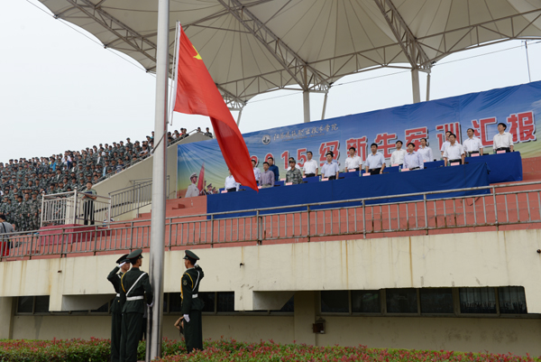 9月20日上午9时整,2015级新生军训汇报大会在西操场隆重举行。党委书记吴光林,院长、党委副书记孙进,73101部队教导员杨再祥,党委副书记、纪委书记张登宏,副院长、党委委员季翔、任留钦、曾凡远及学校相关职能部门领导、二级学院领导在主席台就座。