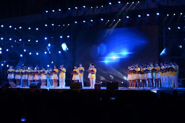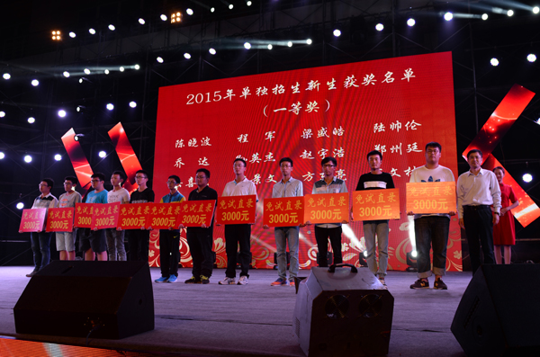 9月20日晚,2015级新生开学典礼暨迎新文艺晚会在体育馆隆重举行。校领导吴光林、孙进、张登宏、季翔、任留钦、曾凡远与4100余名新同学一起观看大学生文艺演出。党委书记吴光林为高分奖励一等奖获得者颁发了奖金。