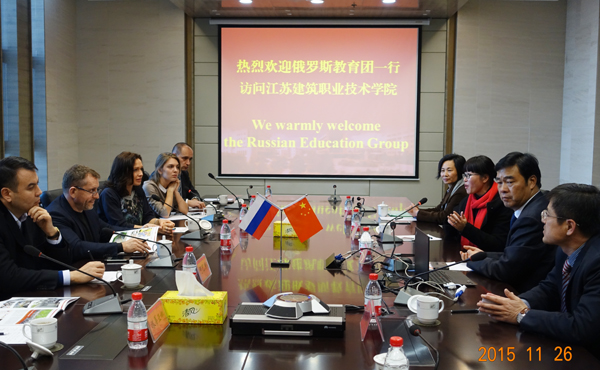 孙进代表学校对访团一行表示欢迎并介绍了学校的办学情况和国际合作交流情况。曾凡远就我校招生留学生的政策及师资培训方面的合作意向与对方进行了接洽交流。俄罗斯访团对我校的办学条件和办学实力给予充分肯定,提出他们企业对技术技能人才渴求的愿望,希望下一步能够在俄罗斯建筑企业的员工实习、实训操练等方面以及俄罗斯学生来华留学进行交流合作。