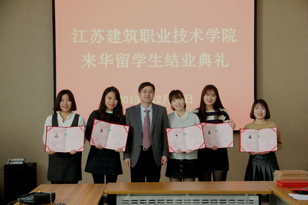12月30日,我校在建筑技术馆会议室为2015年来校交流的6名韩国交换生举行了简单隆重的结业典礼。