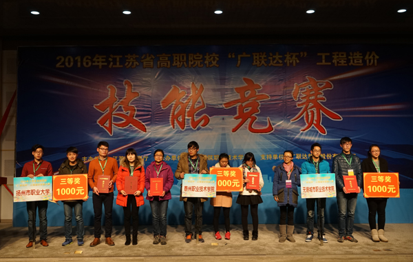 大赛由江苏省教育厅主办、江苏建筑职业技术学院承办、广联达软件股份有限公司协办。来自全省34支院校代表队共170多名老师和选手参加了一天的竞赛活动,比赛分为三个环节,包括工程造价创新思维项目、手工工程量计算、软件算量(钢筋、土建、安装)任务,共计7个小时。经过激烈的角逐,最终江苏建筑职业技术学院、江苏联合职业技术学院苏州建设交通分院与无锡商业职业技术学院三所院校代表队荣获一等奖,江苏城乡建设职业学院等七所院校代表队荣获二等奖,南京工业职业技术学院等十所院校代表队荣获三等奖。(建管学院 冯郁馨)