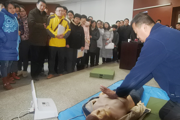 本次培训班内容包括急救基础知识、心肺复苏技术及常见病的预防和处置方法,分别邀请校医院赵凤荣医生讲授急救知识,体育部房庆华、贺恒德两位老师进行急救方法的实操培训。理论课结束后,在专业人员指导下,学员们分批进行心肺复苏实践操作,下学期还将进行技能实操考核与竞赛。学生工作相关职能部门,各二级学院专职学生工作者参加了培训。(学工处 吴文辉)