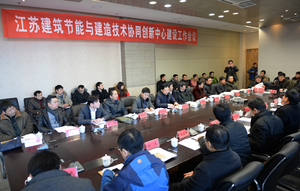 1月24日,由我校牵头建设的江苏建筑节能与建造技术协同创新中心建设工作会议在我校图书馆隆重召开。徐州市规划局副局长陈开武,徐州市城乡建设局副局长刘浩鹰,清华大学建筑设计研究院总建筑师祁斌,中国矿业大学力建学院党委书记吕恒林、夏军武教授,龙信建设集团董事长陈祖新、副总经理何小军、龙信建设集团研发中心主任龚咏辉,中建八局三公司徐州分公司党总支书记王士群,徐州市规划设计院院长孙强等协同单位代表,我校党委书记吴光林、院长孙进、副院长季翔及科技处、人事处、教务处、财务处、审计处等相关部门、开放基金项目负责人参加了大会。