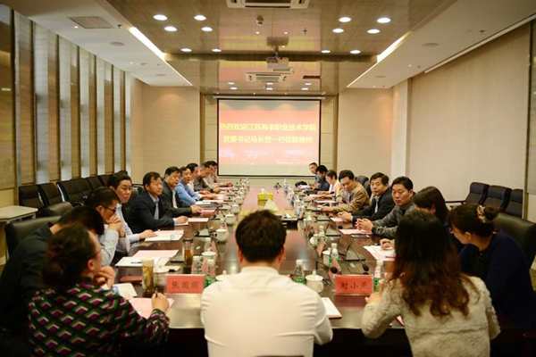5月10日,江苏海事职业技术学院党委书记马长世一行13人来校考察交流。党委书记吴光林代表我校向来访客人简要介绍了学校办学情况,双方就“十三五”事业发展规划、校企合作与二级管理、党团建设与学生教育管理等方面进行了深入交流。