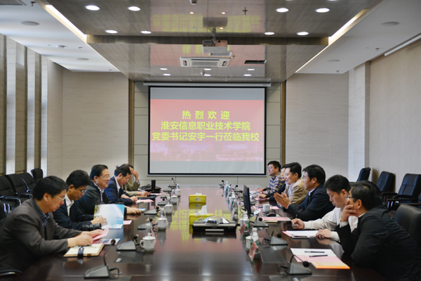 5月17日,淮安信息职业技术学院党委书记安宇一行5人来校考察交流。党委书记吴光林教授、院长孙进教授代表学校热情接待了来访客人,党委副书记、纪委书记张登宏全程陪同接待。