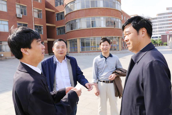 孙进院长与滨州学院院长刘文烈(左一)交谈